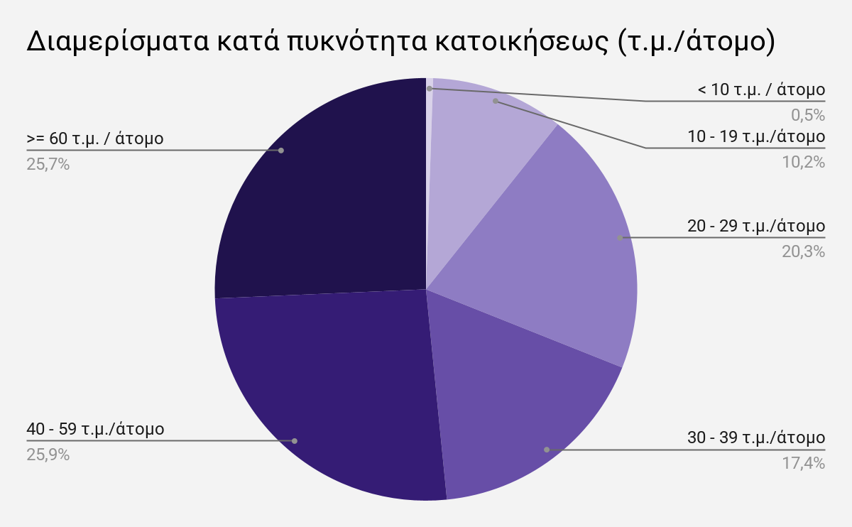Συρρίκνωση χώρου: Παρά τη σχετικά καλή κατανομή των μεγεθών, σημαντικός αριθμός κατοίκων ζει με πολύ περιορισμένο προσωπικό χώρο.