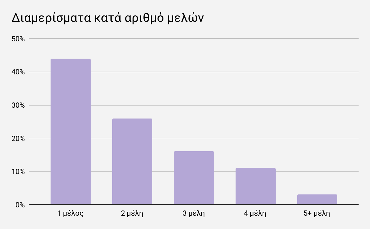 Συνολικά, το 44% των διαμερισμάτων κατοικείται από ένα μόνο άτομο.