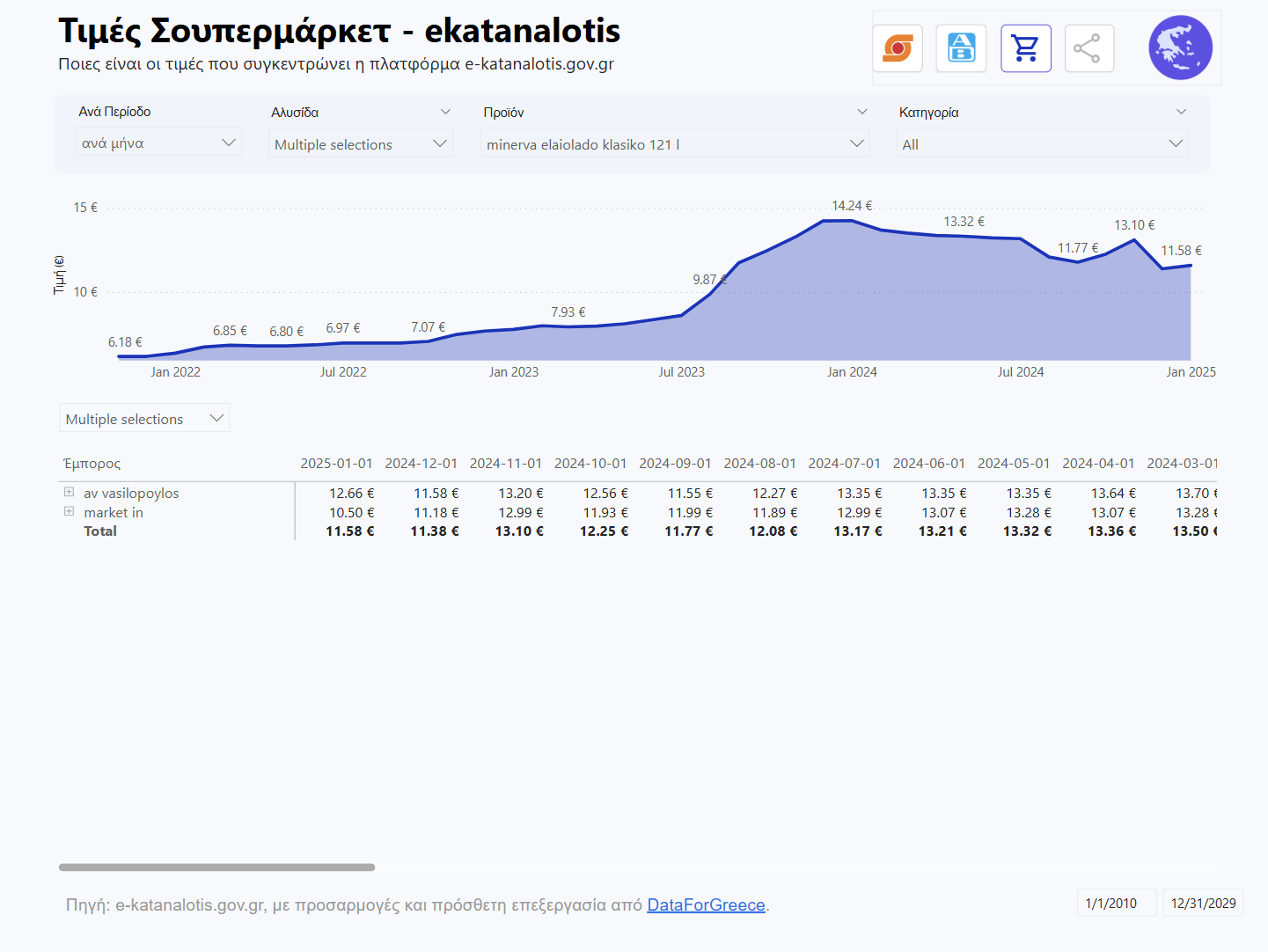 Στο παρόν άρθρο, θα εξετάσουμε την περίπτωση ενός δημοφιλούς οικονομικού προϊόντος, του ελαιόλαδου Μινέρβα 1L, και πώς διαμορφώθηκε η τιμή του σε δύο μεγάλες αλυσίδες λιανικής πώλησης στην Ελλάδα.